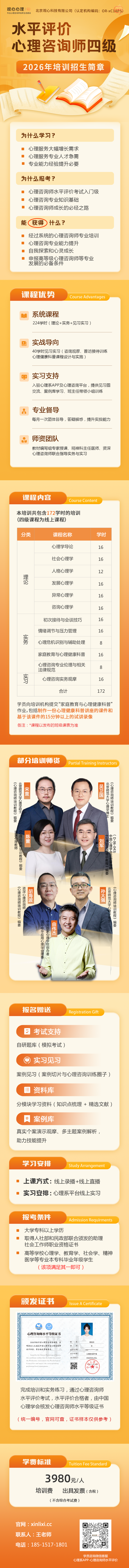 心理咨询师水平评价项目招生简章 | 心理咨询师(四级)